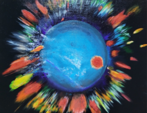 Dit abstracte drieluik geeft het gevoel weer, van de positieve verandering die langzaam doorbreekt wat betreft Corona. Een gevoel van hoop, van een nieuwe lente en van licht dat doorbreekt. 'When light breaks through'.